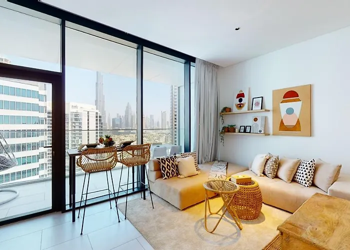 The 1-room Stylish Studio With Burj Khalifa View Apartment Dubai provides easy access to various city attractions, such as South Ridge Park, situated only a 5-minute walk away. The 64 m^2 apartment is also equipped with amenities like ironing facilities, a washing machine to ensure guests' comfort.